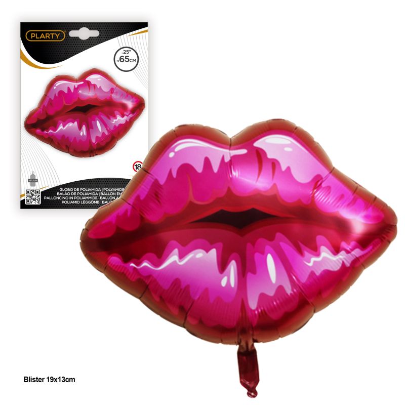 Balão Foil Lábios Rosa 65Cm