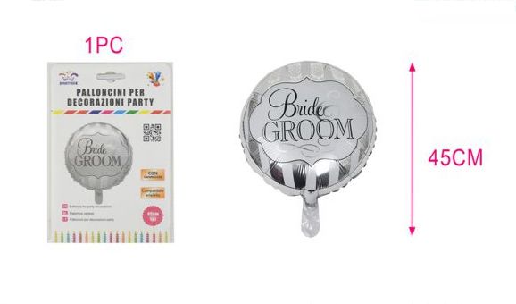 Balão Foil Prateado Redondo Bride & Groom 45Cm