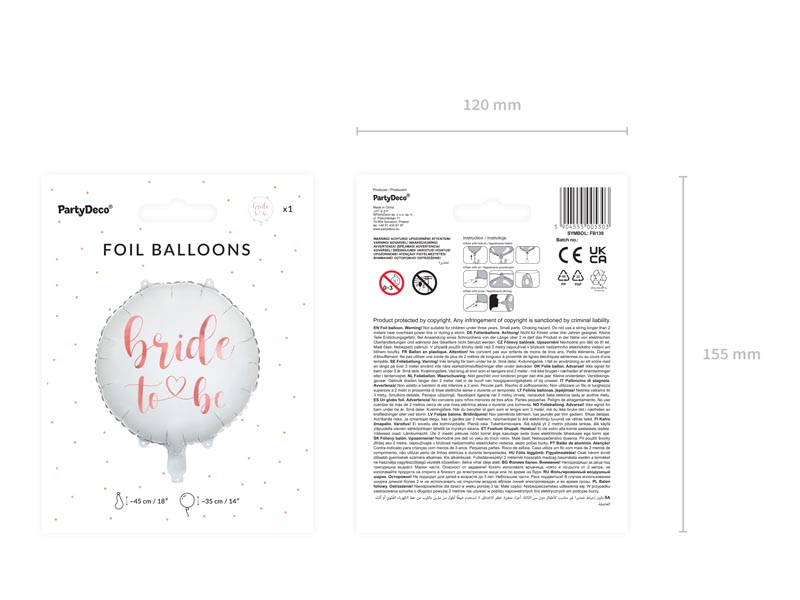 Balão Foil Redondo Branco Bride to Be Rose Gold 45Cm