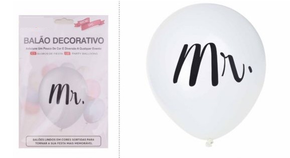 Balão Latéx Branco Impresso Mr. / Mrs. 60Cm