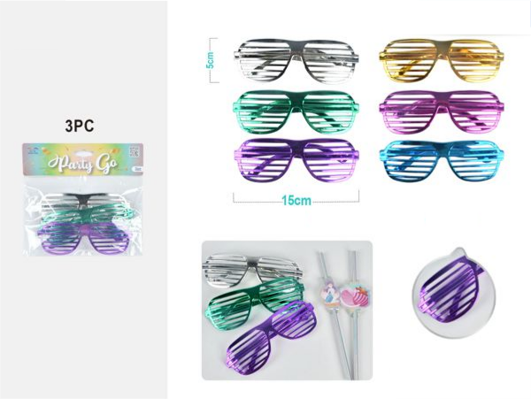 Blister 3 Óculos Metálicos Festa mix 15Cm