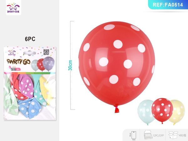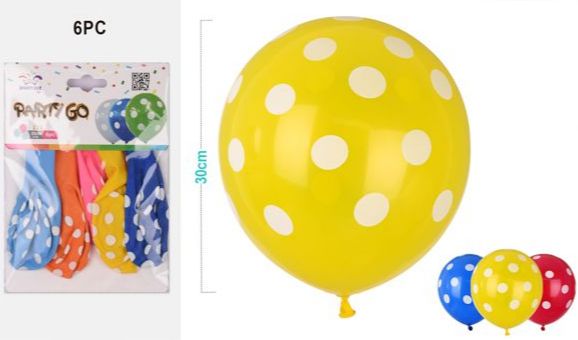 Blister 6 Balões Látex Mix Bolinhas 30Cm