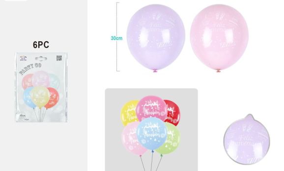 Blister 6 Balões Látex Pastel Feliz Aniversário 30Cm