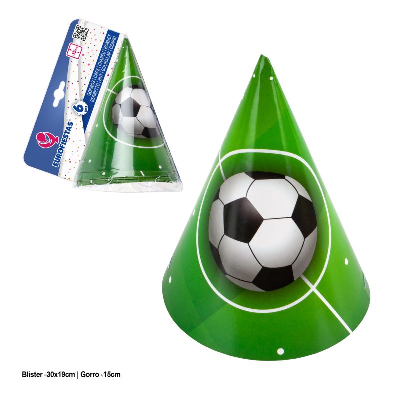 Blister 6 Chapéus Festa Cone Verde Futebol 15Cm