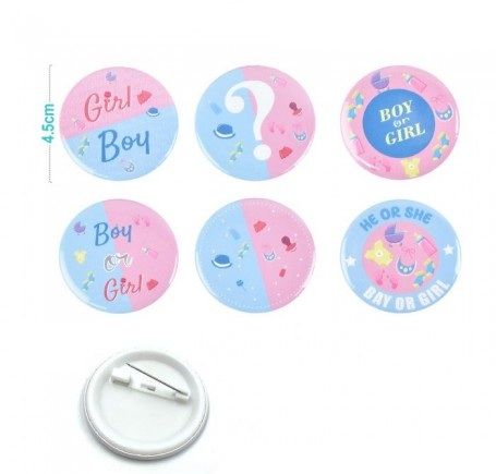 Blister 6 Crachás Baby Shower Rosa-Azul Boy or Girl 4.5Cm