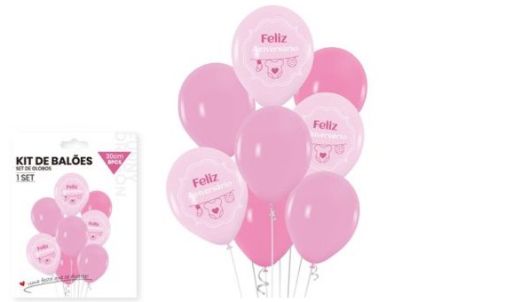 Blister 8 Balões Latéx Feliz Aniversário Baby Shower 30Cm