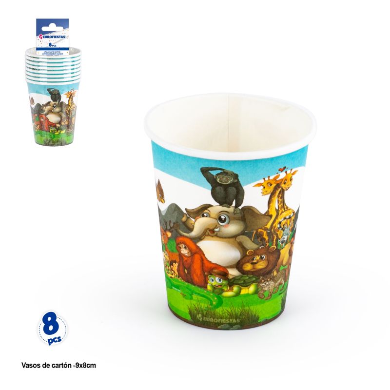 Blister 8 Copos Papel Animais Divertidos 9x8Cm
