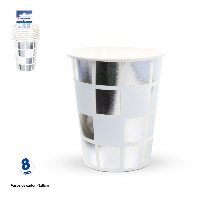 Blister 8 Copos Papel Estilo Bola Disco Prateada 9x8Cm