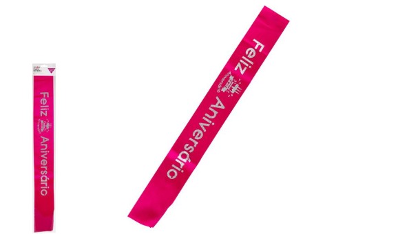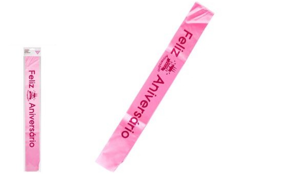 Faixa Rosa Feliz Aniversário 80(160)x9.5Cm Cetim