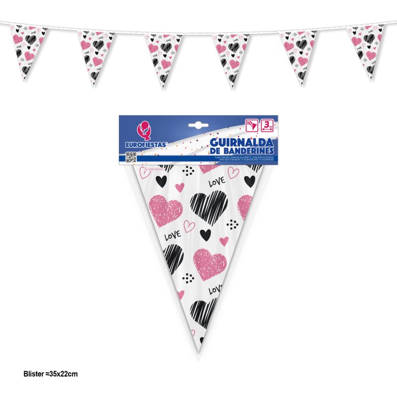 Grinalda 10 Bandeiras Corações LOVE 3Mt