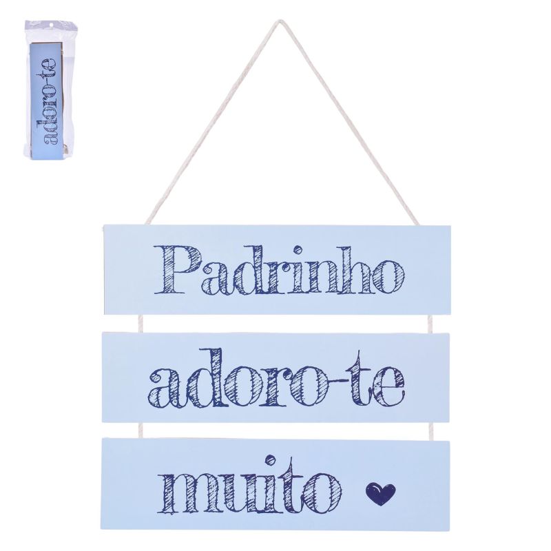 Placa Pendurar MDF Azul Padrinho Adoro-te 27x30x2Cm