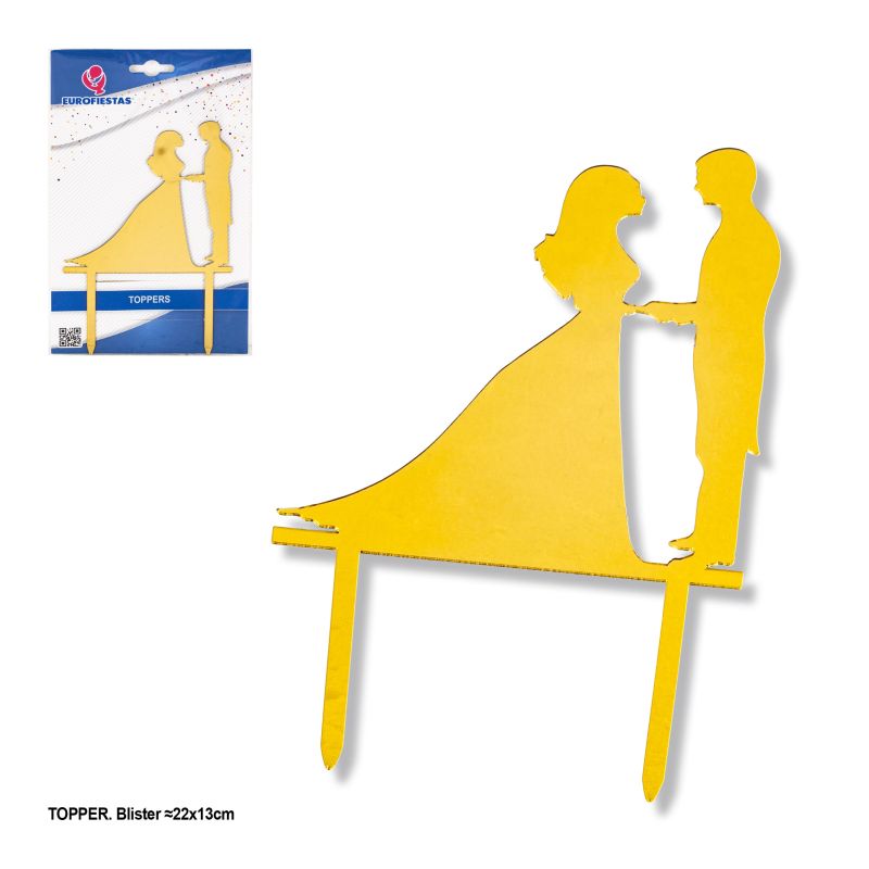 Topper Acrílico Bolo Dourado Casamento Noivos