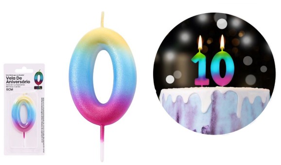 Vela de Aniversário Gradiente Multicolor Pastel 6Cm